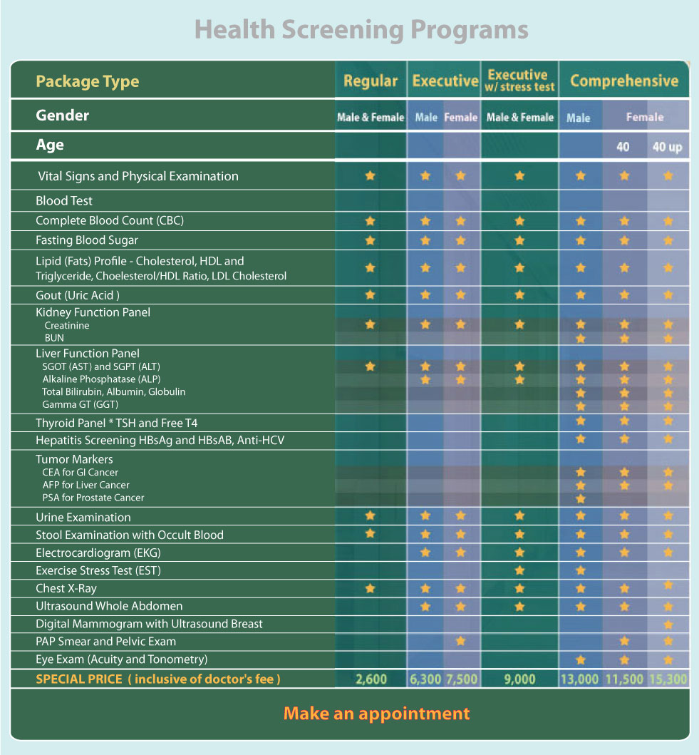 Health Screening Center at Bumrungrad: The new Health Screening Center at Bumrungrad International is one of the largest physical check-up centers in the region providing world class service to over 30,000 people each year. The Center matches specially trained Preventive Medicine physicians with the extensive diagnostic facilities of Bumrungrad International. Patients can either select from extensive list of health screening packages or a program can be custom designed in consultation with one of Bl's physicians.